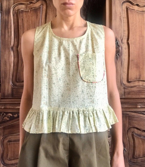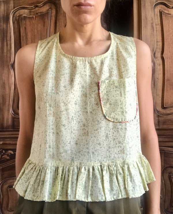 Musculosa confeccionada en tela antigua 100% algodón, tiene cierre en la espalda.
