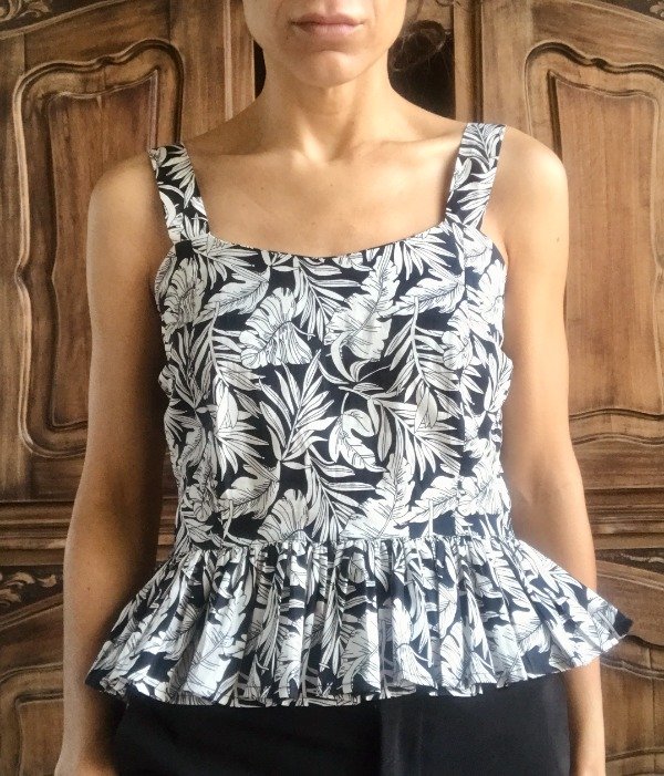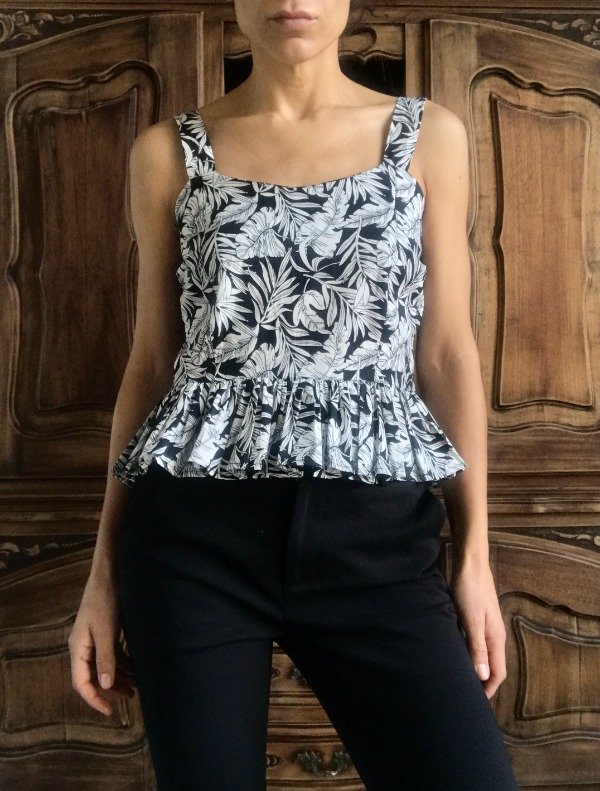 Musculosa confeccionada con poplin estampada, con cierre y elástico en la espalda.