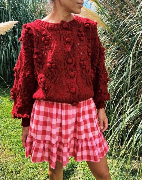 Saquito tejido a mano en lana Mohair suave con botones forrados.