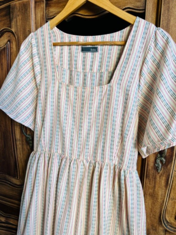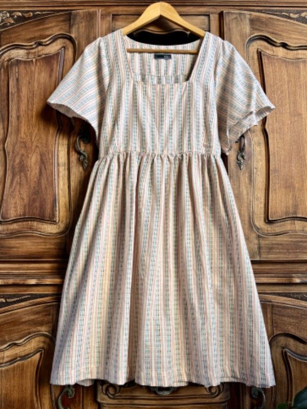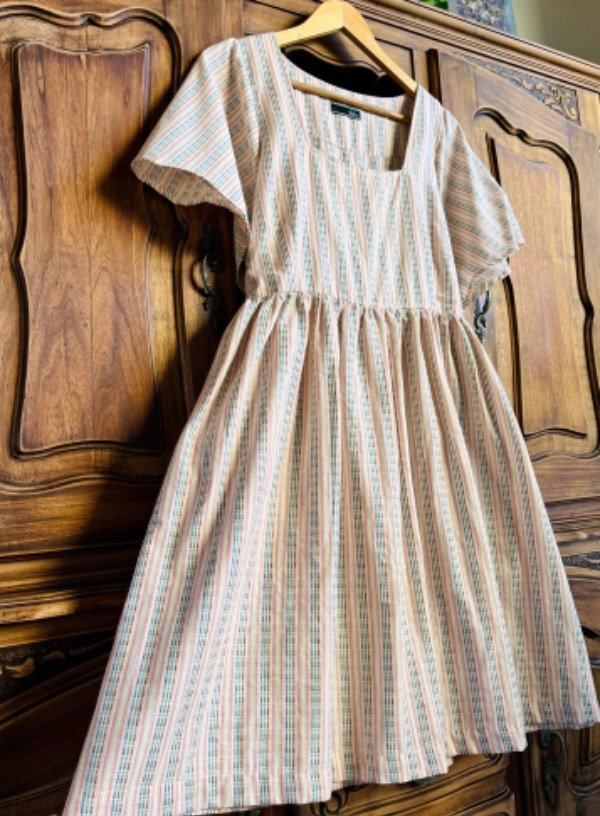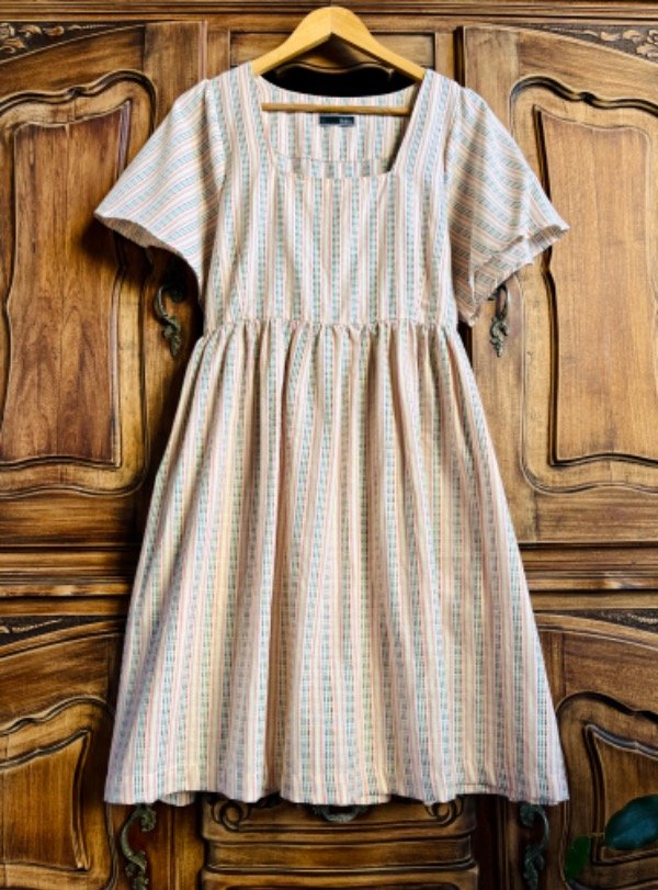 Corte amplio, con lazo para atar y bolsillos laterales.