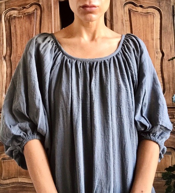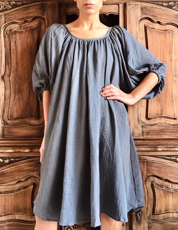 Vestido de corte amplio confeccionado en gasa de algodón.