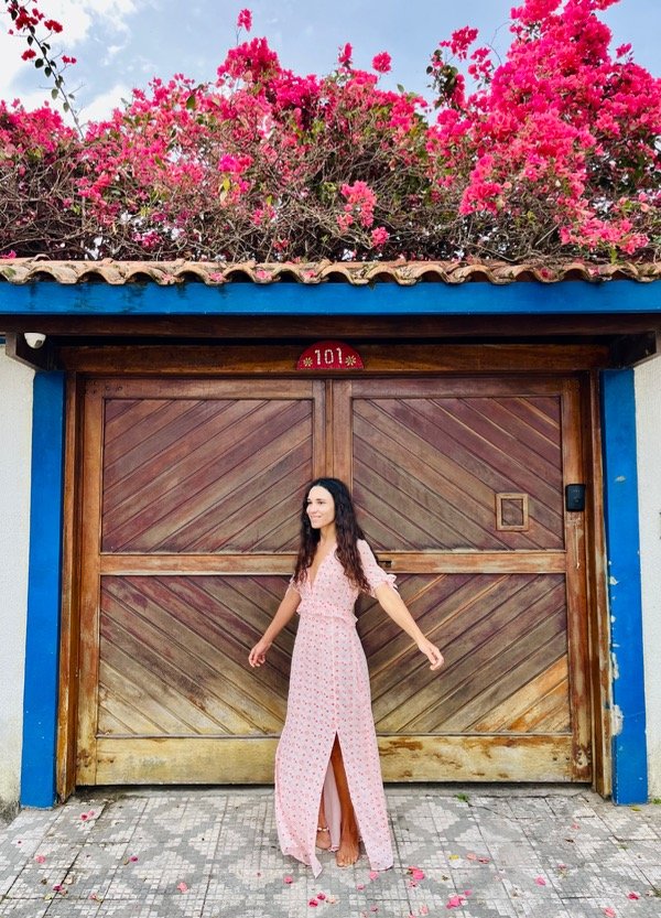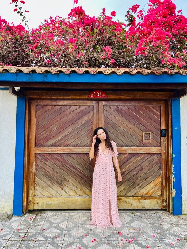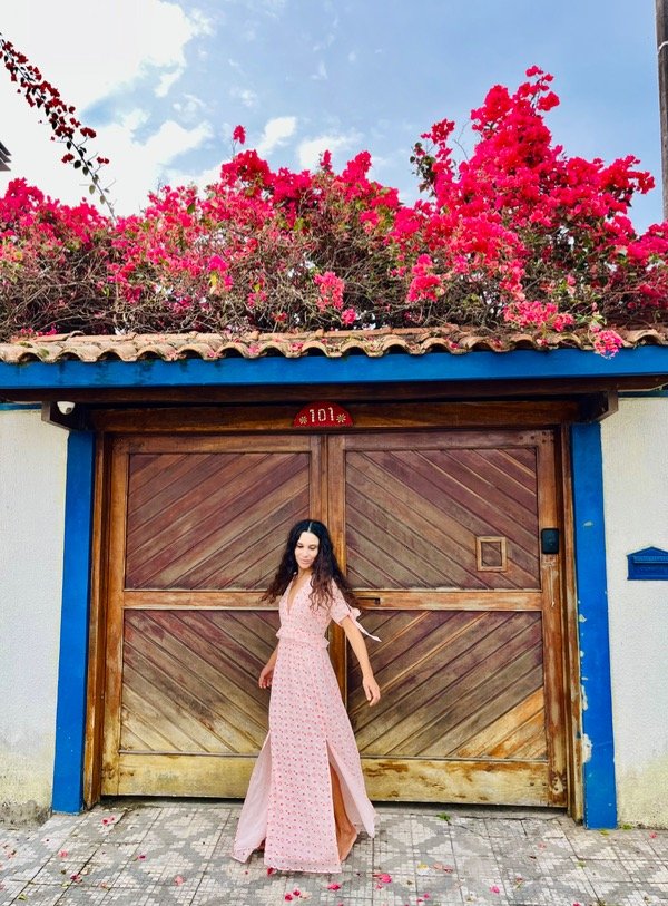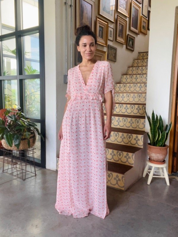 Vestido confeccionado en gasa, todo forrado con cierre invisibles.