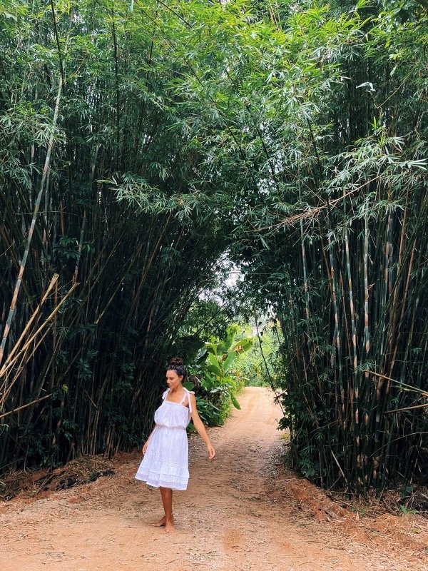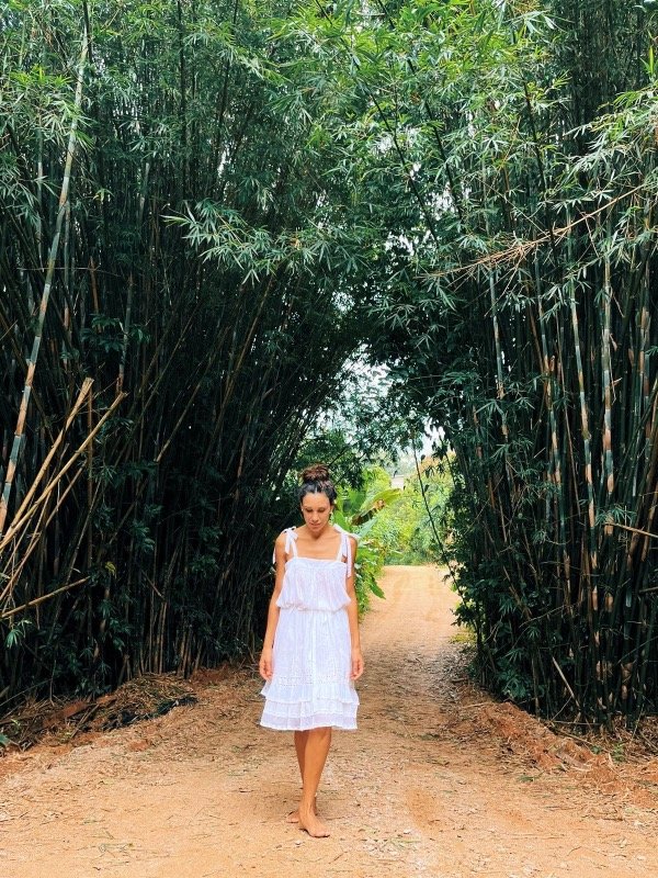 Corte amplio que se adapta a varios talles, con lazo opcional para atar en la cintura.